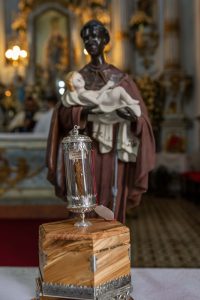 A relíquia peregrina de São Benedito Conceição. A relíquia consiste num fragmento do músculo do santo e veio de Palermo, Ítalia, trazida pelos frades da Província do Santíssimo Nome de Jesus (Sicilia), Fernando Truppia e Marcelo Badalamenti.